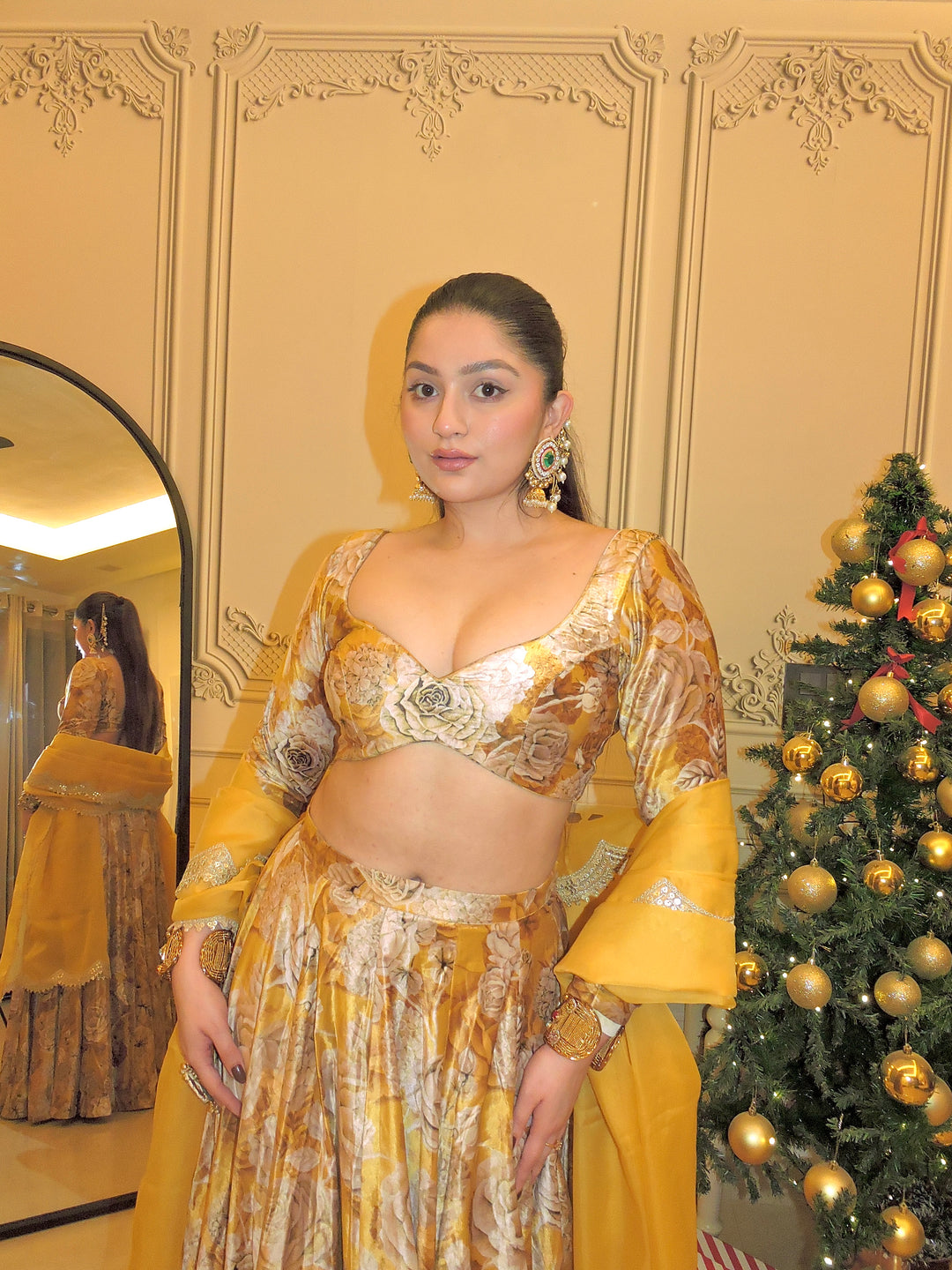 Akshitaa in Gold lehenga set (organza dupatta)