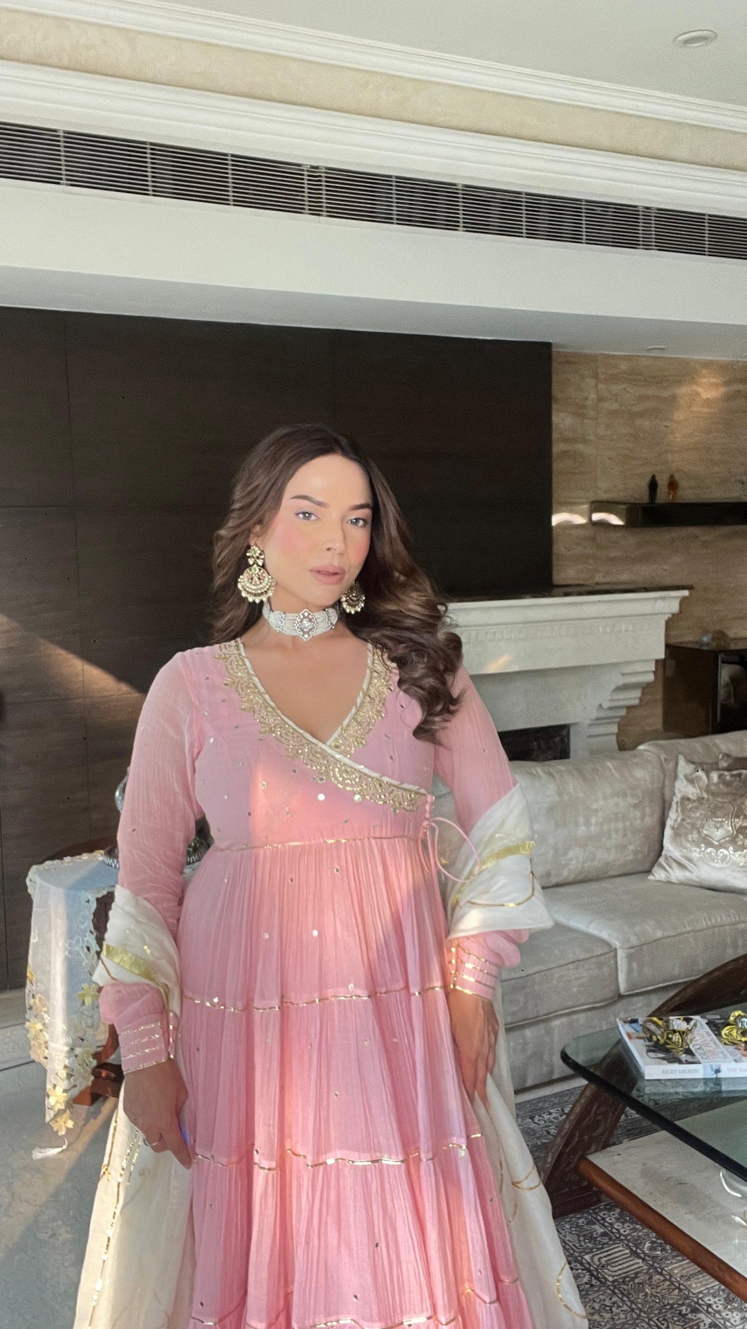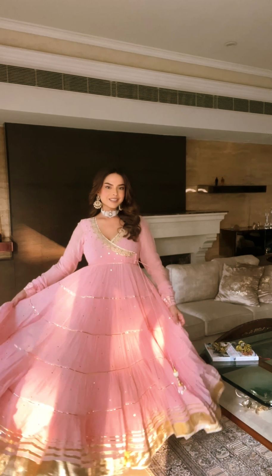 Srishti Chhabria in Blush Pink Ruffle Saree Set