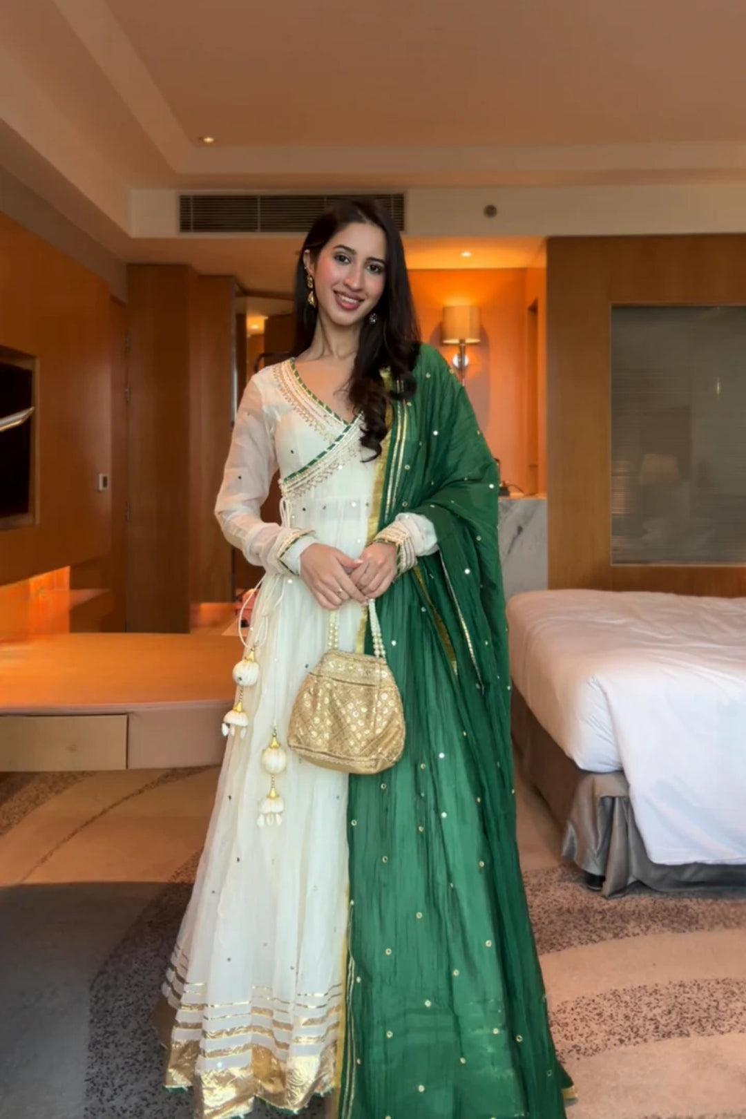 Renaira Phulwani in Peach & Gold Tissue Lehenga Set